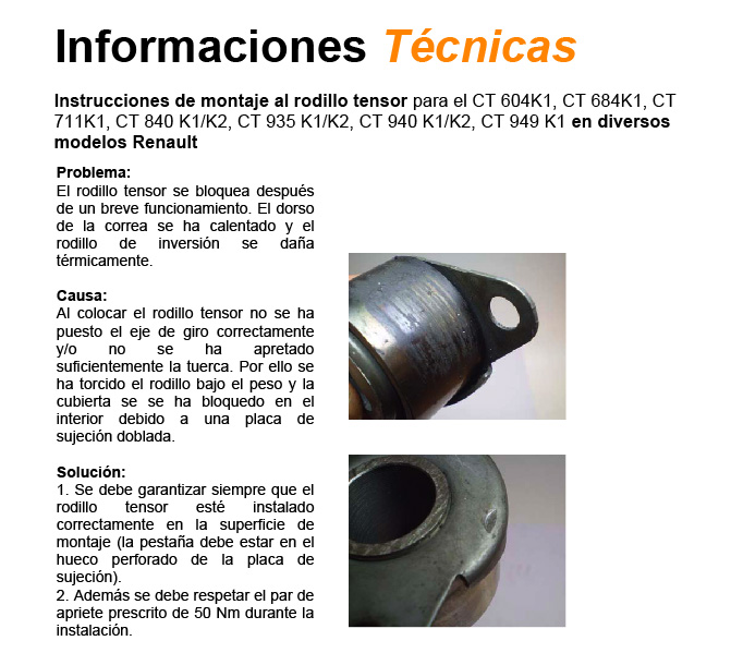 CONTITECH – INSTRUCCIONES DE MONTAJE AL RODILLO TENSOR EN DIVERSOS MODELOS RENAULT