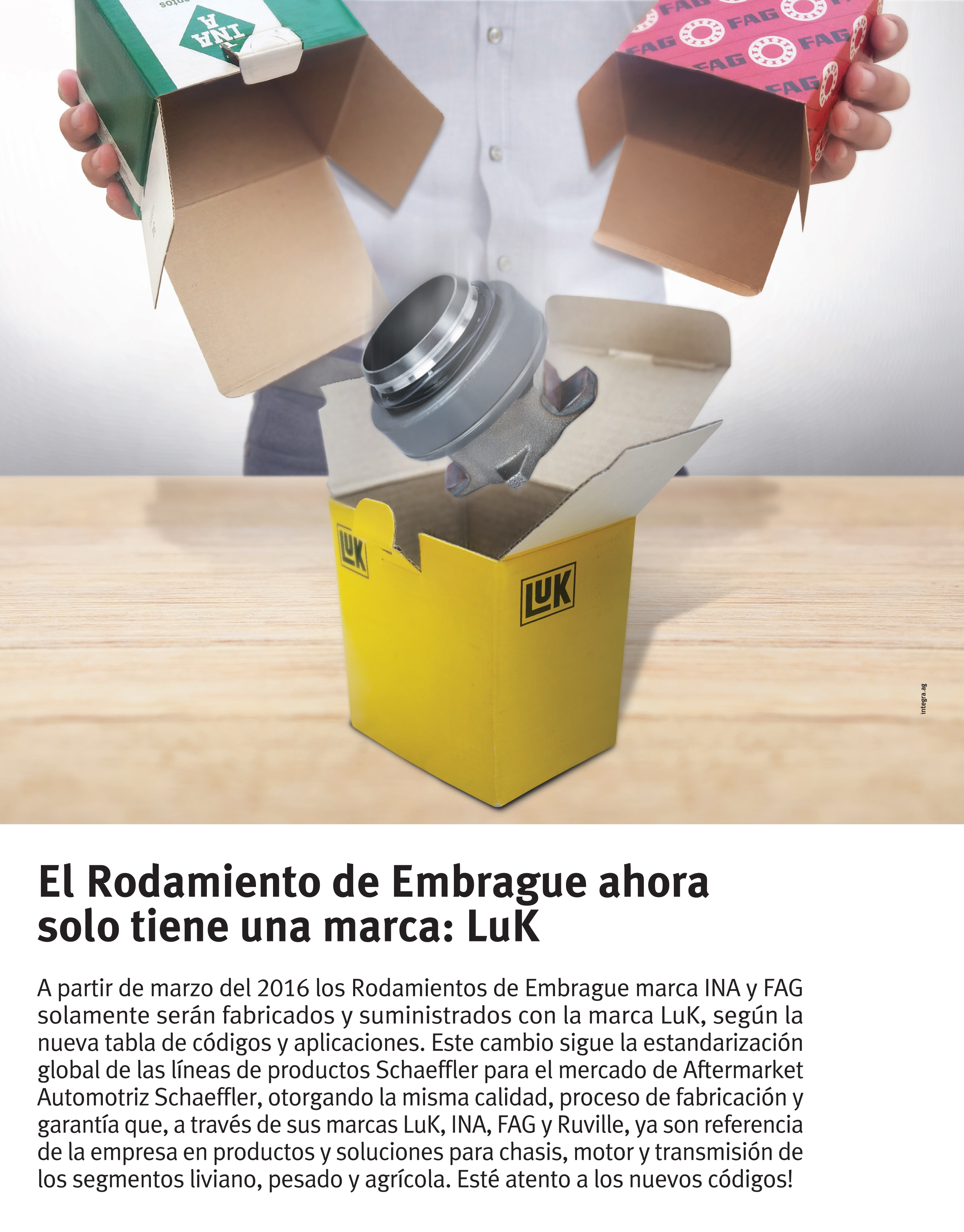 Información Técnica Volver INA/FAG – RODAMIENTOS DE EMBRAGUE INA Y FAG CAMBIAN A LUK Para mas información comuníquese con nuestros Representantes de Ventas 4016-0000 / info@rodamet.com