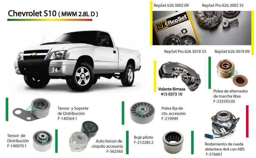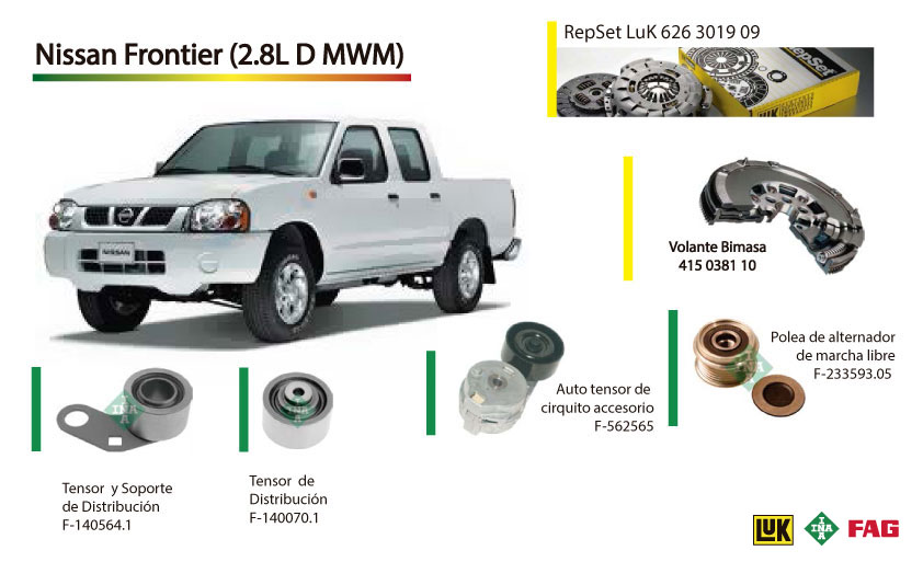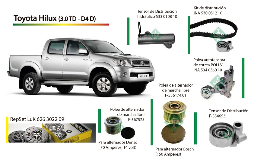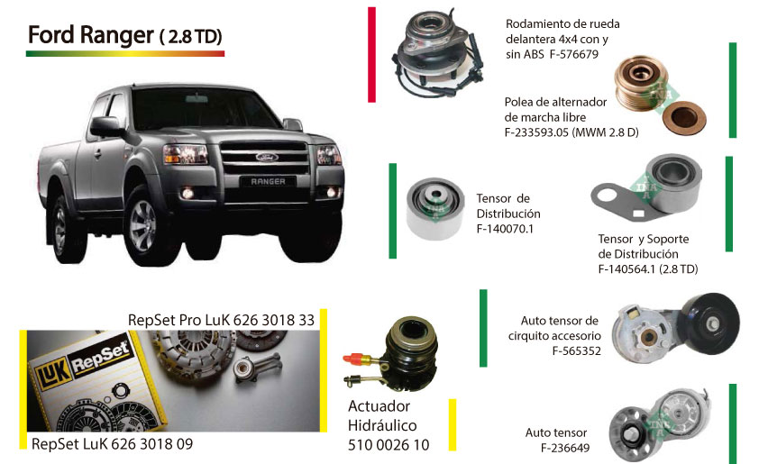 Los productos INA, LUK y FAG están presentes en varios de los vehículos que conforman parte del parque automotor Argentino; a través de los últimos años, hemos sido testigos de una gran oferta de Pick ups por parte de los principales fabricantes; estos vehículos de gran presencia en todo el país y sobretodo en la zona sur del mismo; son equipados de fábrica con varios de componentes INA/LUK/FAG; los “Top 5 Pick ups.