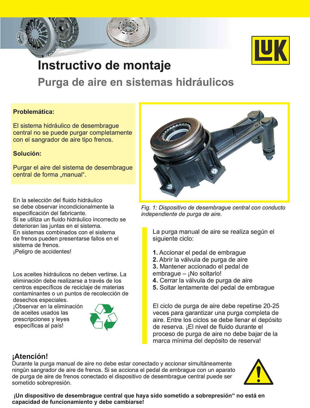 LUK – INSTRUCTIVO DE MONTAJE: PURGA DE AIRE EN SISTEMAS HIDRÁULICOS