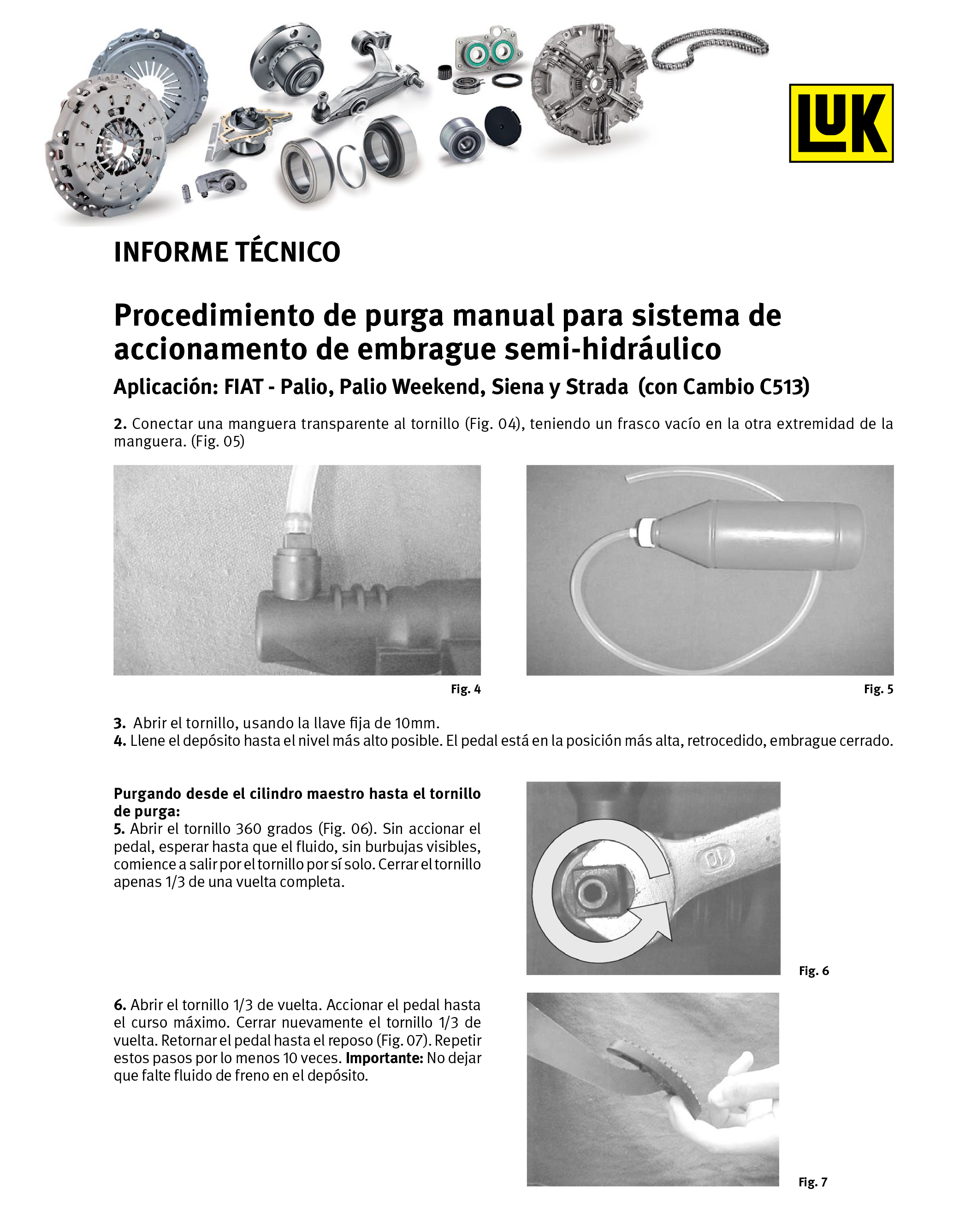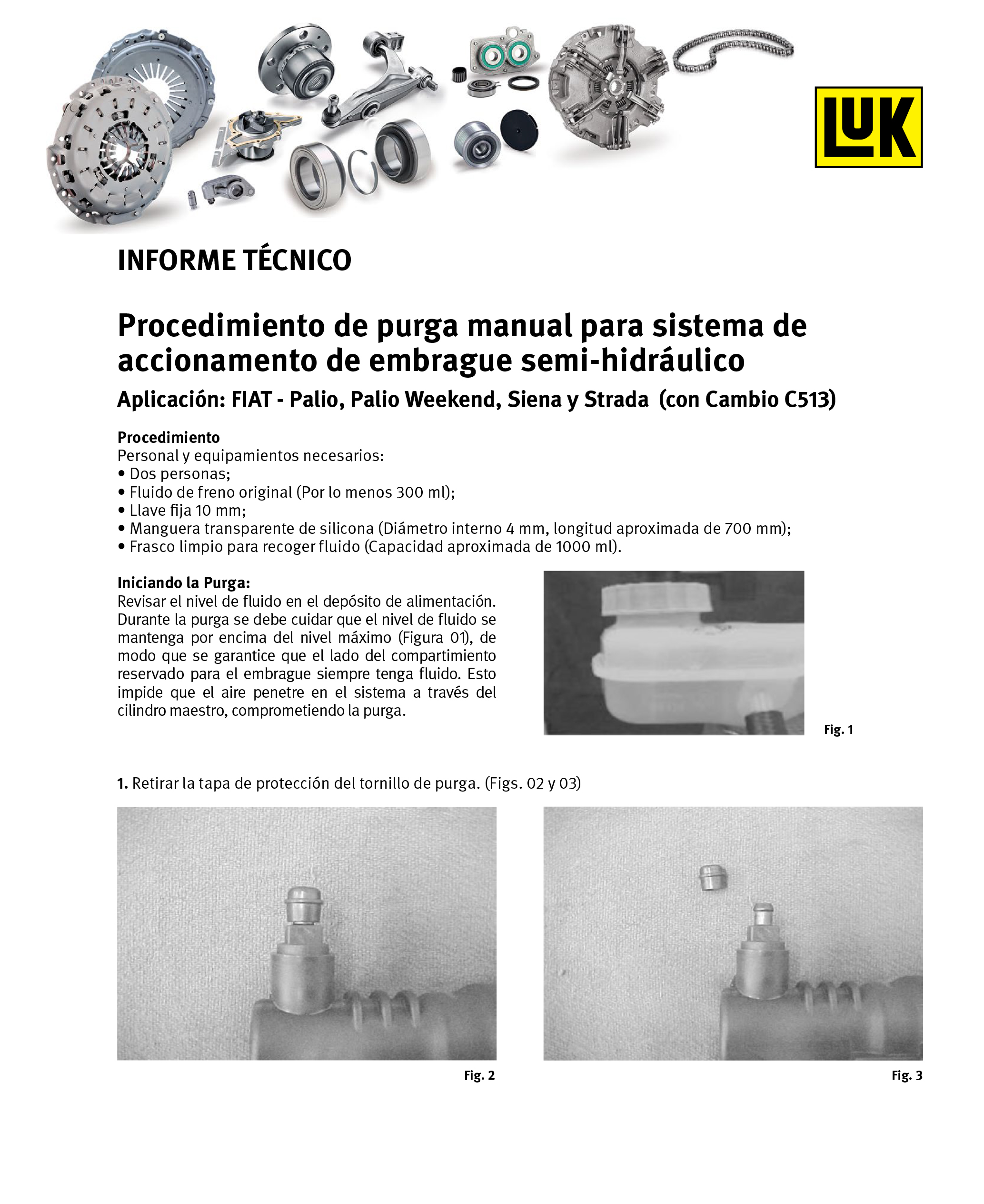 LUK – PROCEDIMIENTO DE PURGA MANUAL PARA SISTEMA DE ACCIONAMIENTO DE EMBRAGUE SEMI-HIDRÁULICO.