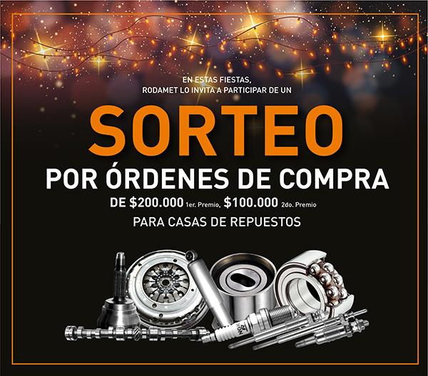 En estas fiestas, Rodamet lo invita a participar de un SORTEO POR ÓRDENES DE COMPRA de $200.000 (1er. Premio), $100.000 (2do. Premio) para CASAS DE REPUESTOS.